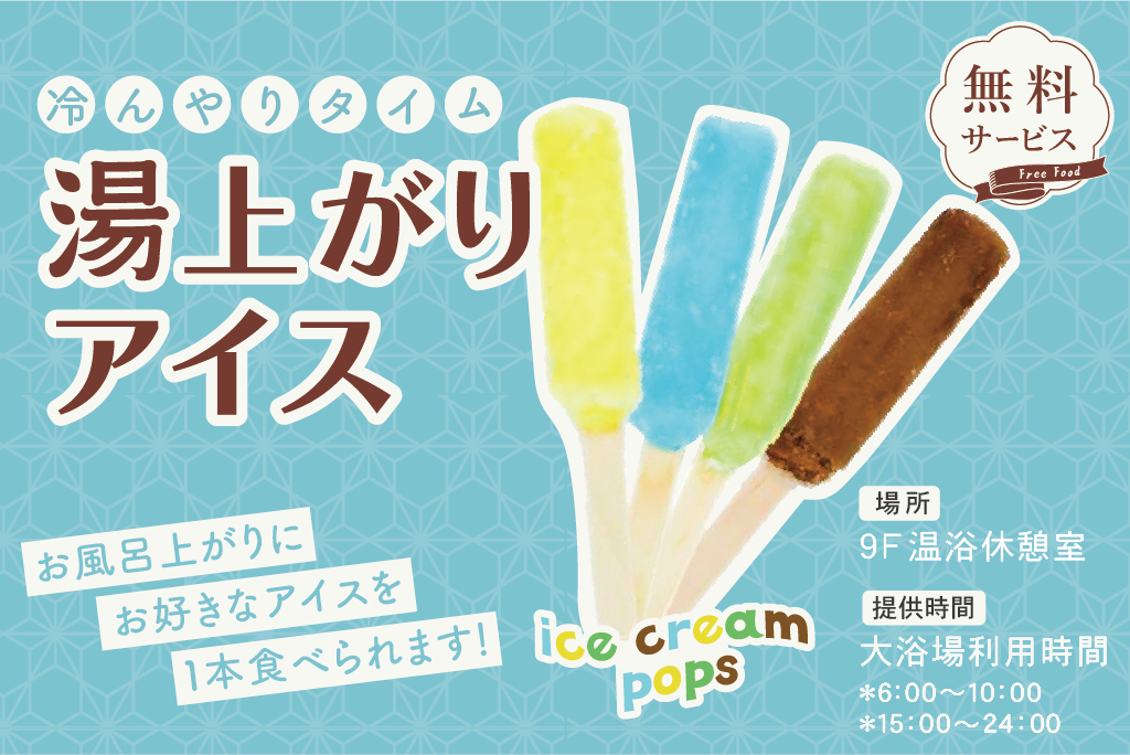 9F温浴ロビースペースにて無料サービスの「湯上がりアイス」