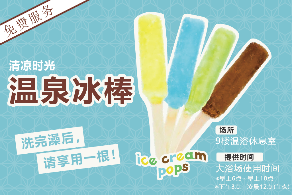 9楼温浴大厅提供免费「泡汤后冰淇淋」